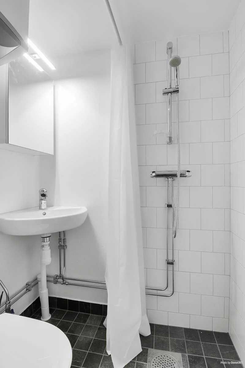 varmvattenberedare, toalettstol, handfat, duschblandare och dusch. Samt dragning och installation av vatten till kök och montering av diskbänk med blandare.