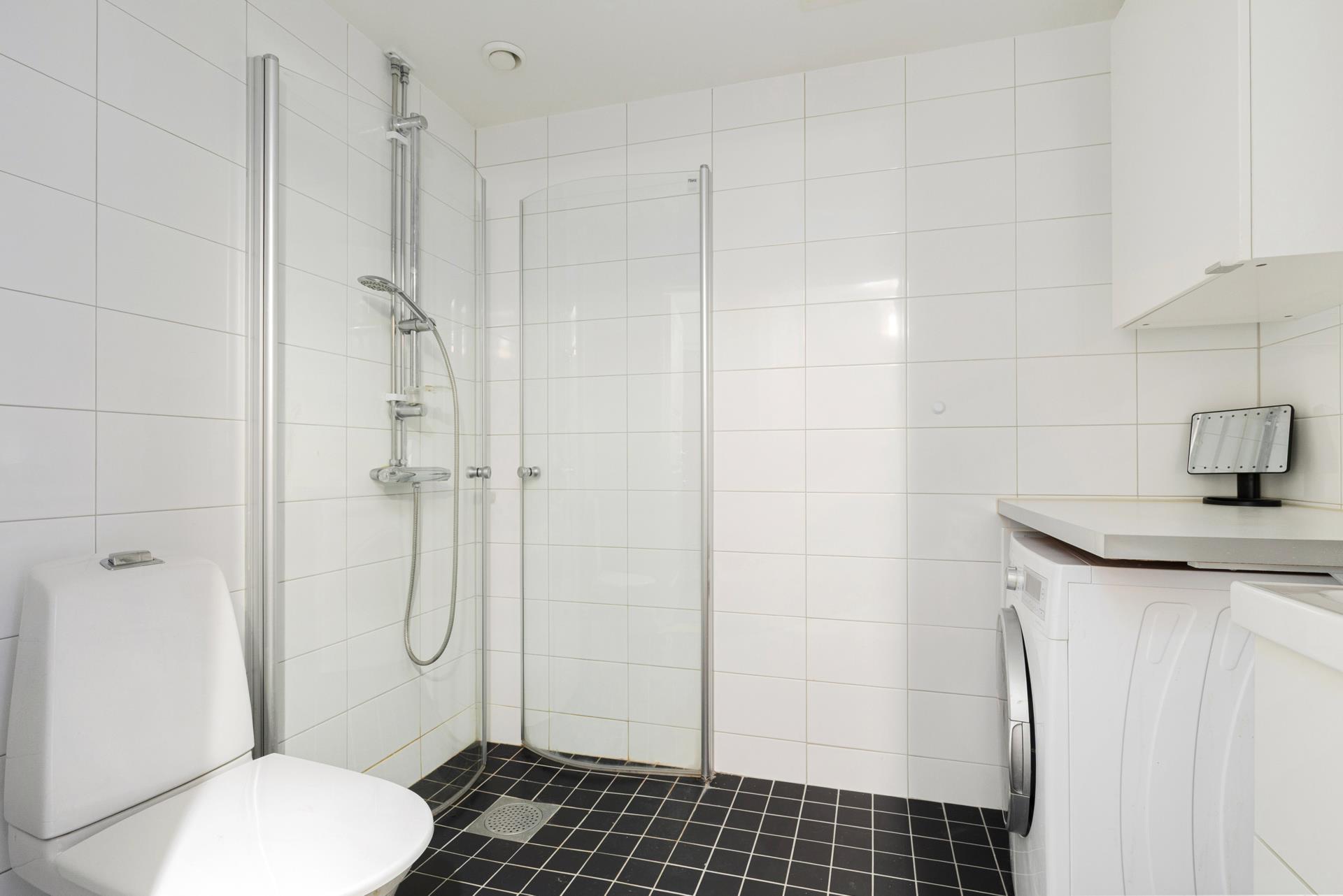 Bostaden har genomgående parkettgolv med undantag för badrummet.
