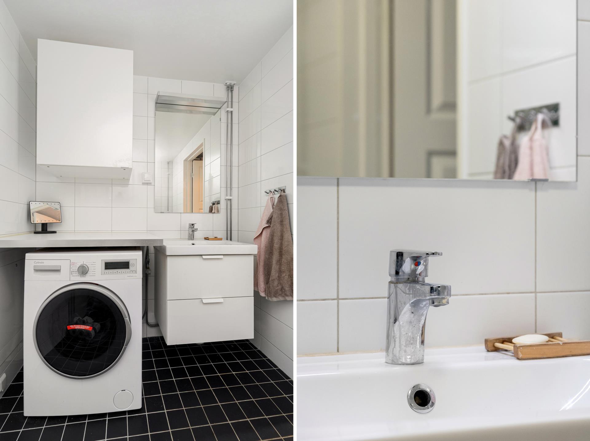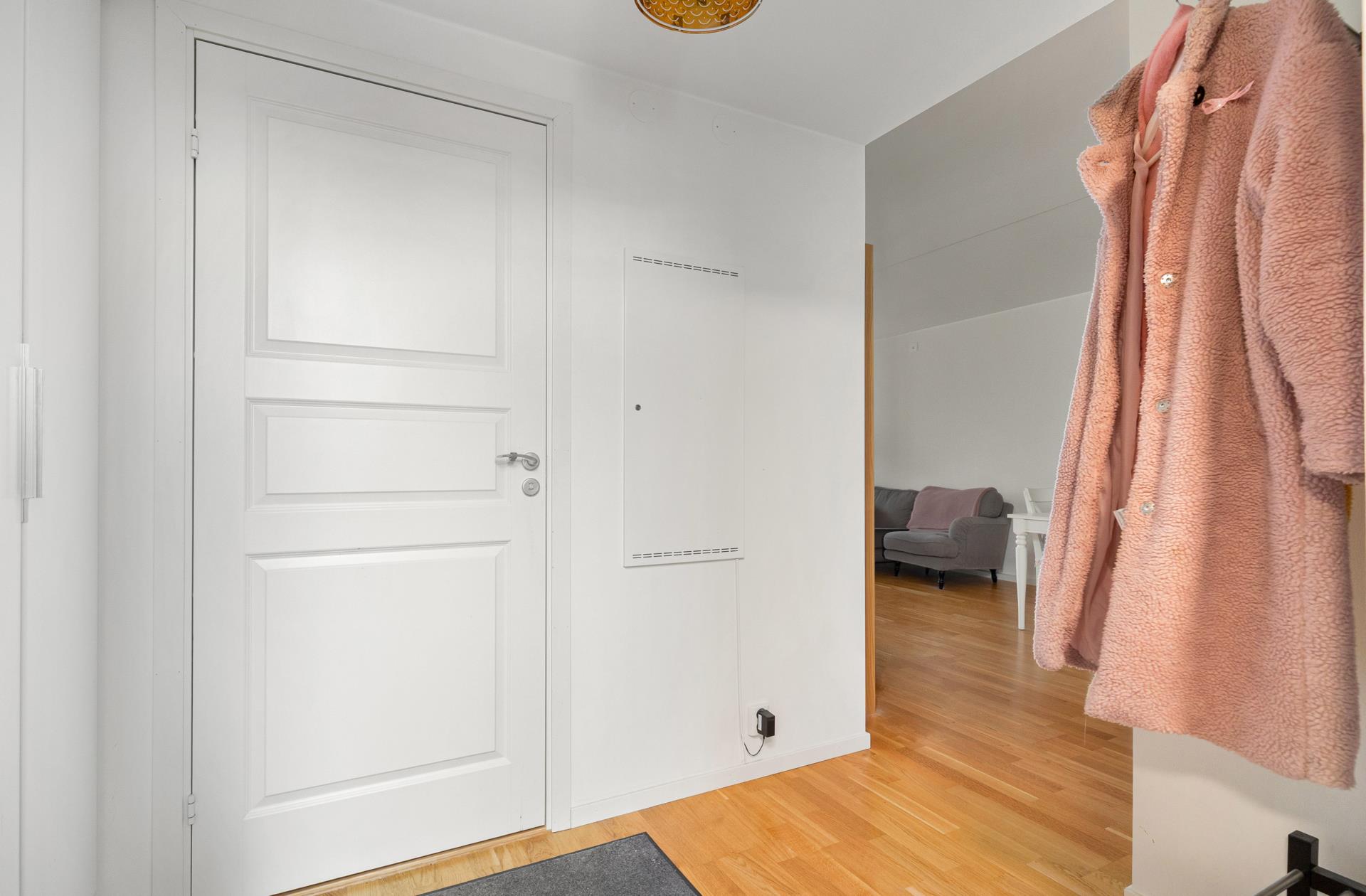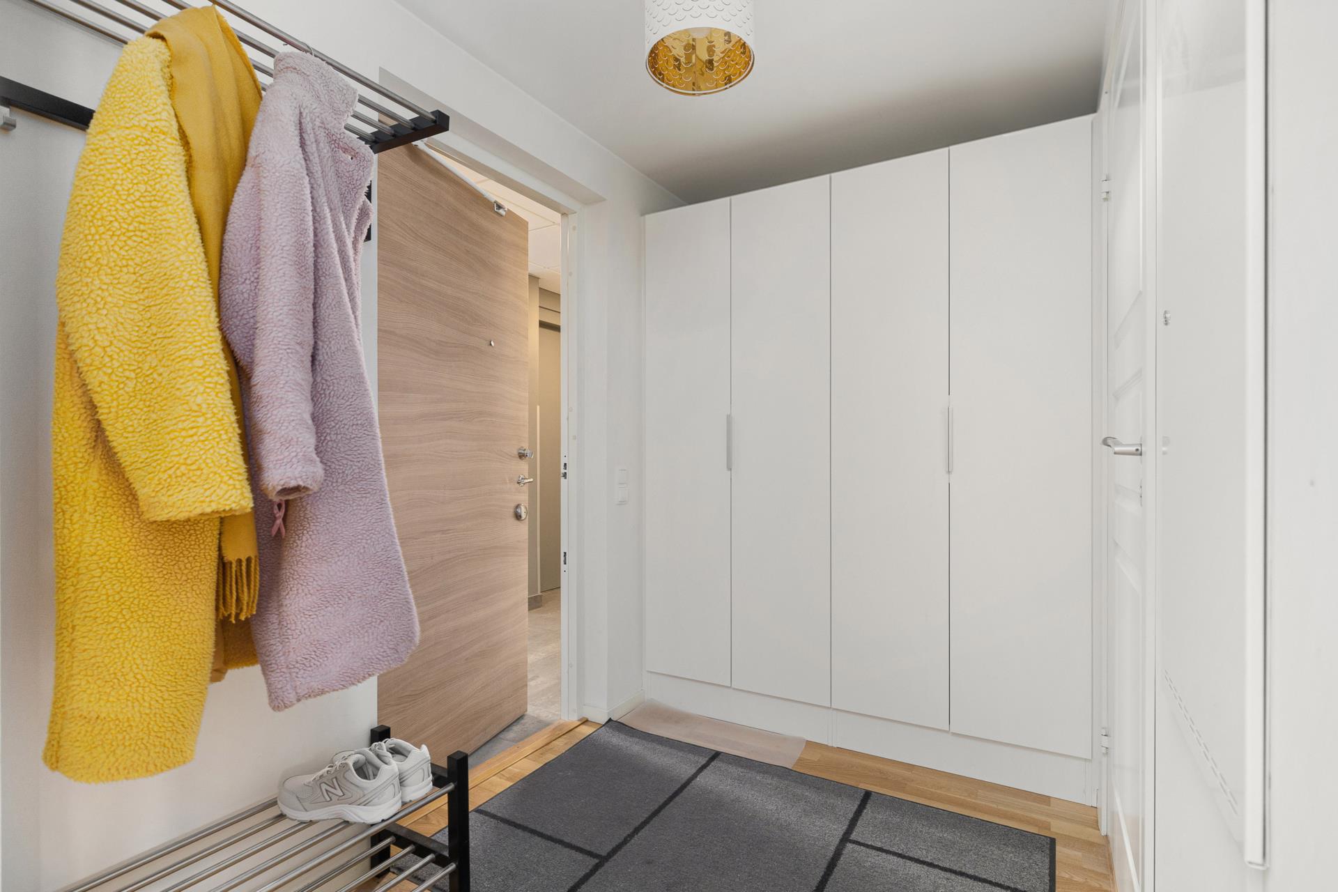 Badrummet är helkaklat i stilren design och i den välkomnande hallen finns generöst med förvaring i garderober och utrymme för avhängning.